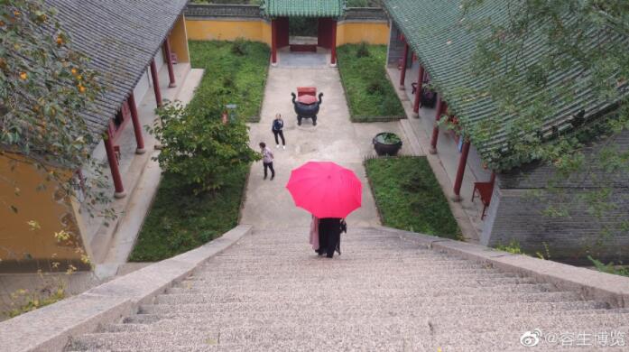 两条路方向大致相同,犹豫良久,我还是选择了右侧的野路。同伴则选择左侧的游人络绎的石阶路。行约几十米野路转了一个弯竟然回归石阶路,虽选择不同,最终还是殊途同归。